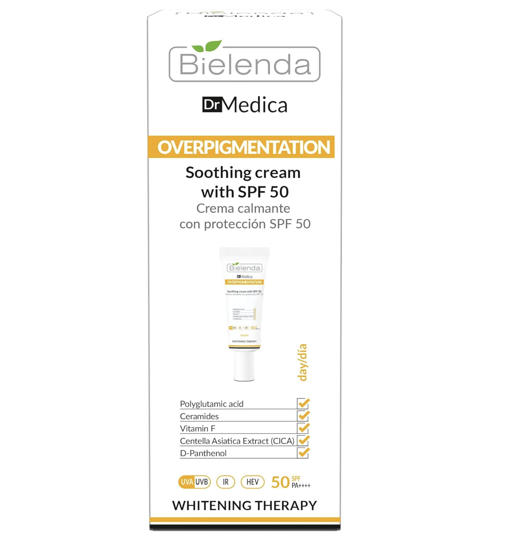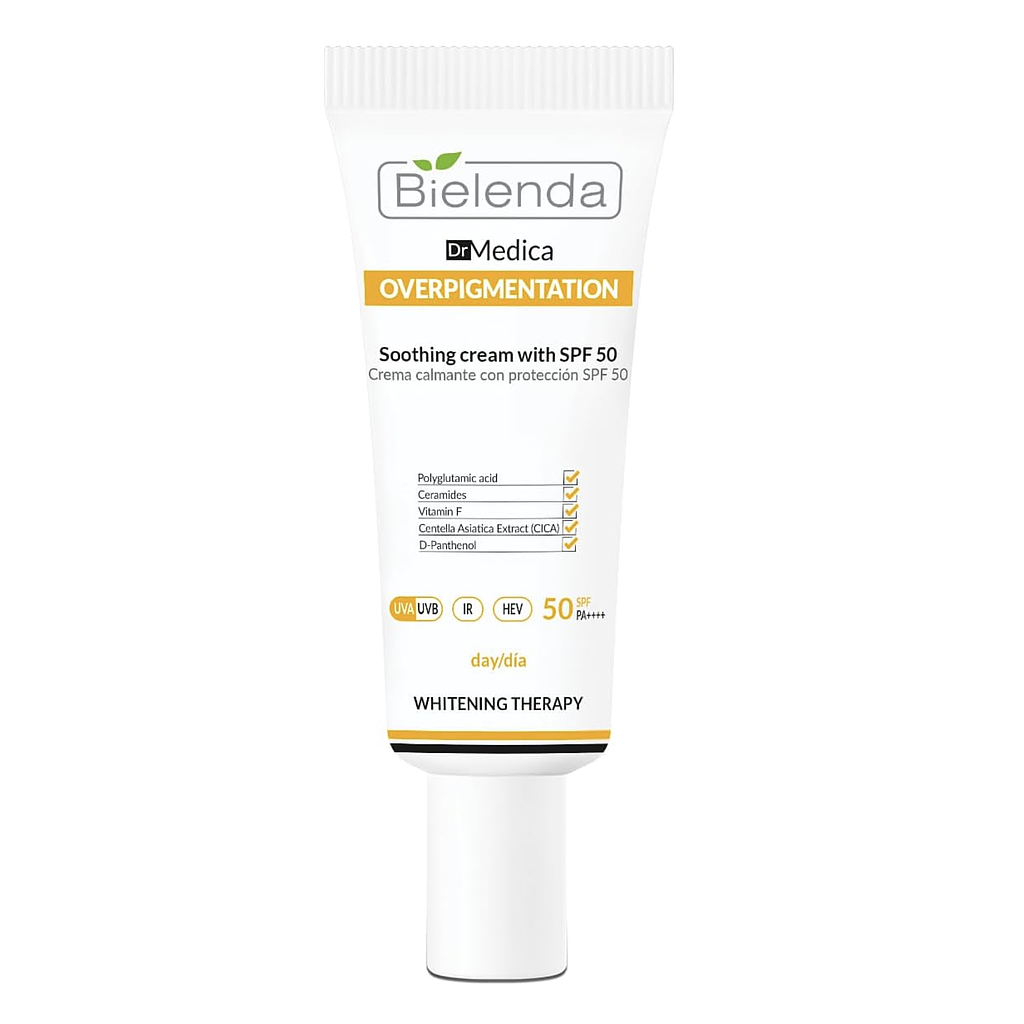 BIELENDA - Dr Medica Crema calmante sobrepigmentación con SPF 50 para el día, 50 ml